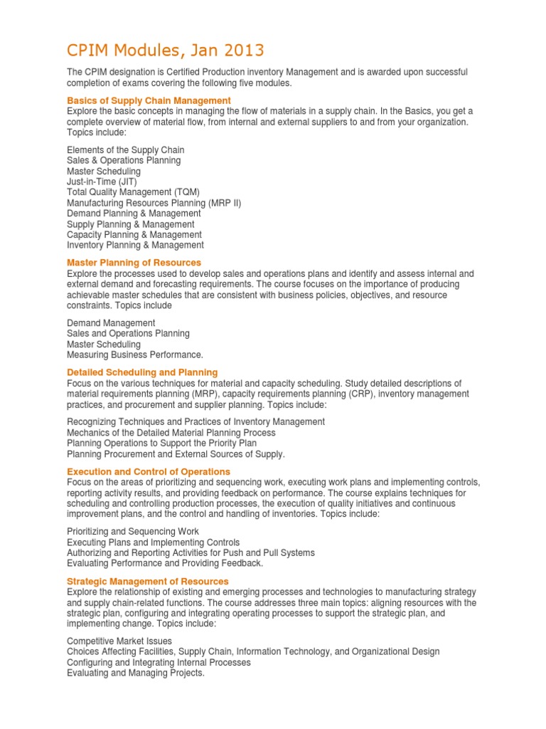 Module Content: Certified in Production and Inventory Management (Cpim ...
