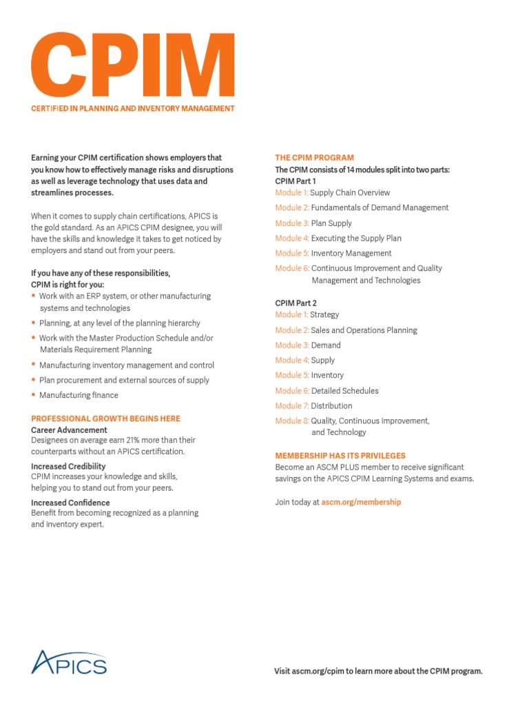 CPIM Certification Benefits and Details | PDF