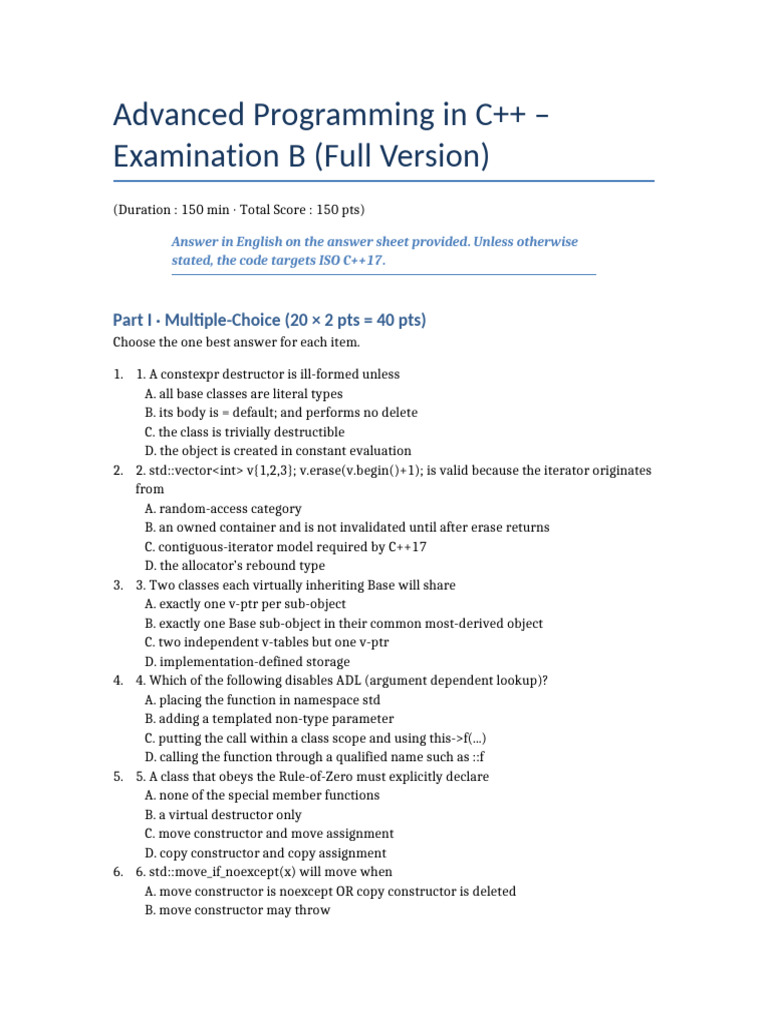 Advanced CPP Exam B Full | PDF | Constructor (Object Oriented ...