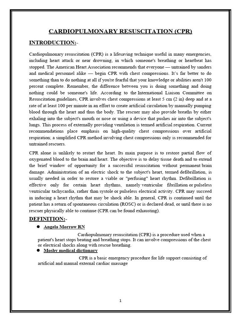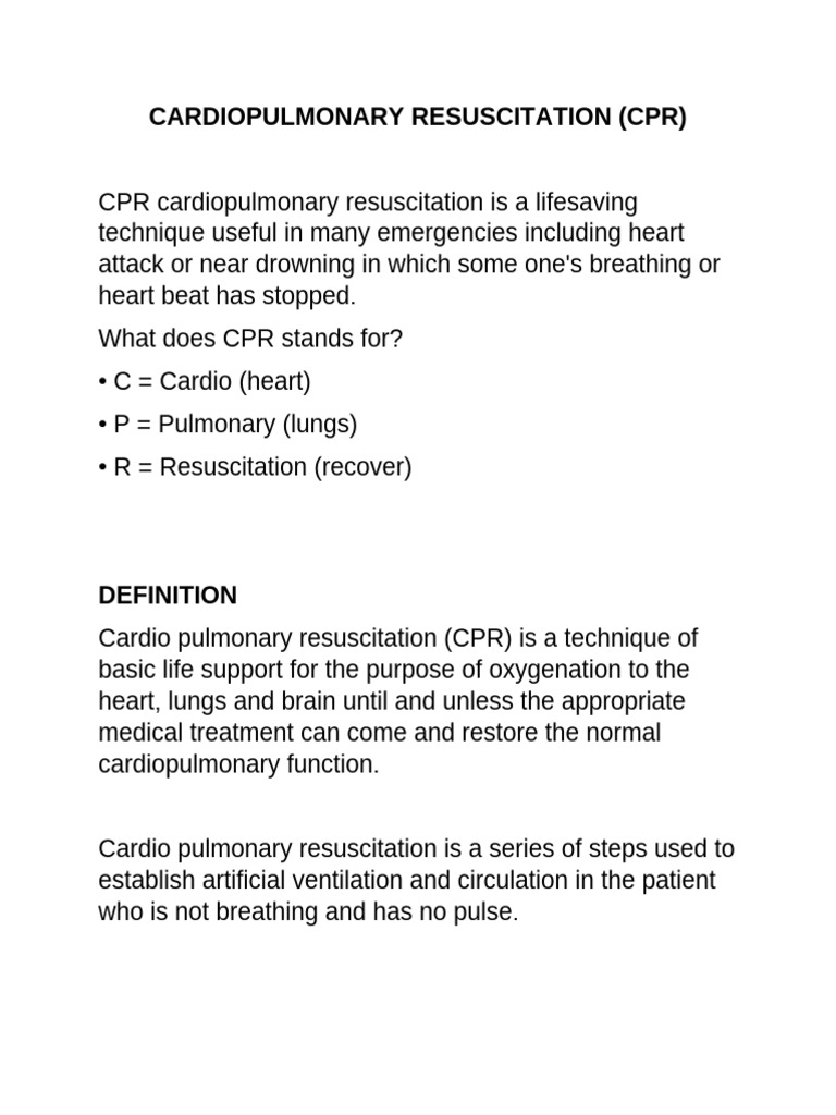 SOLUTION: Assignment on Cardio pulmonary resuscitation CPR and full ...