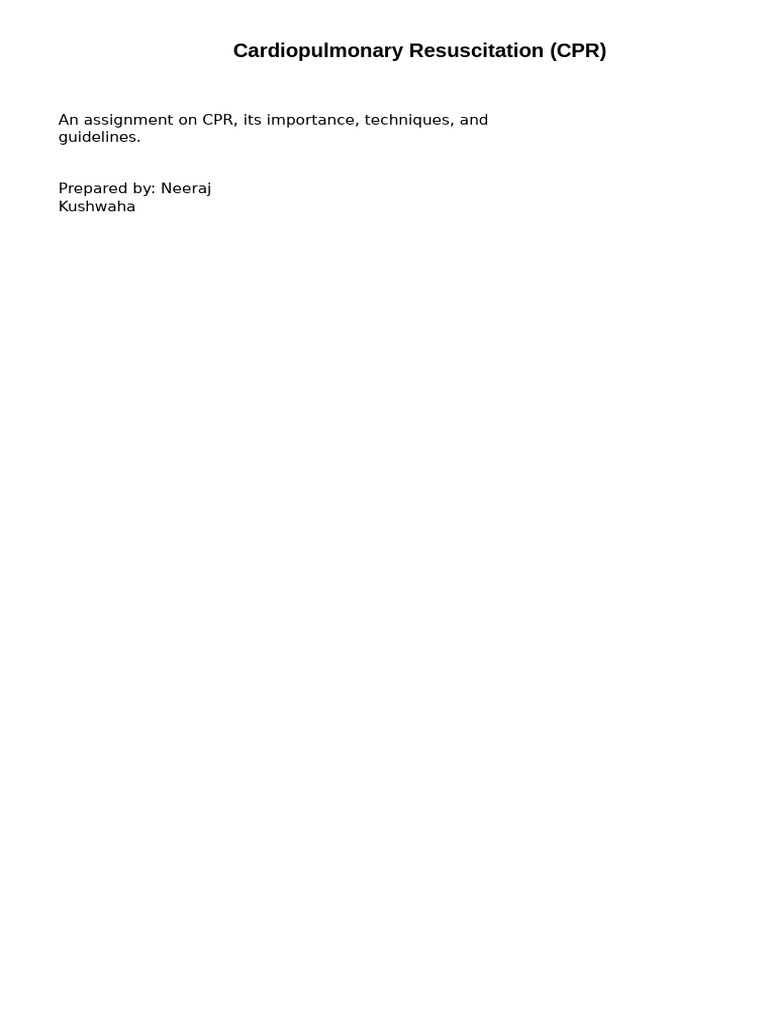 1.assignment On CPR | PDF | Cardiopulmonary Resuscitation | Cardiac Arrest