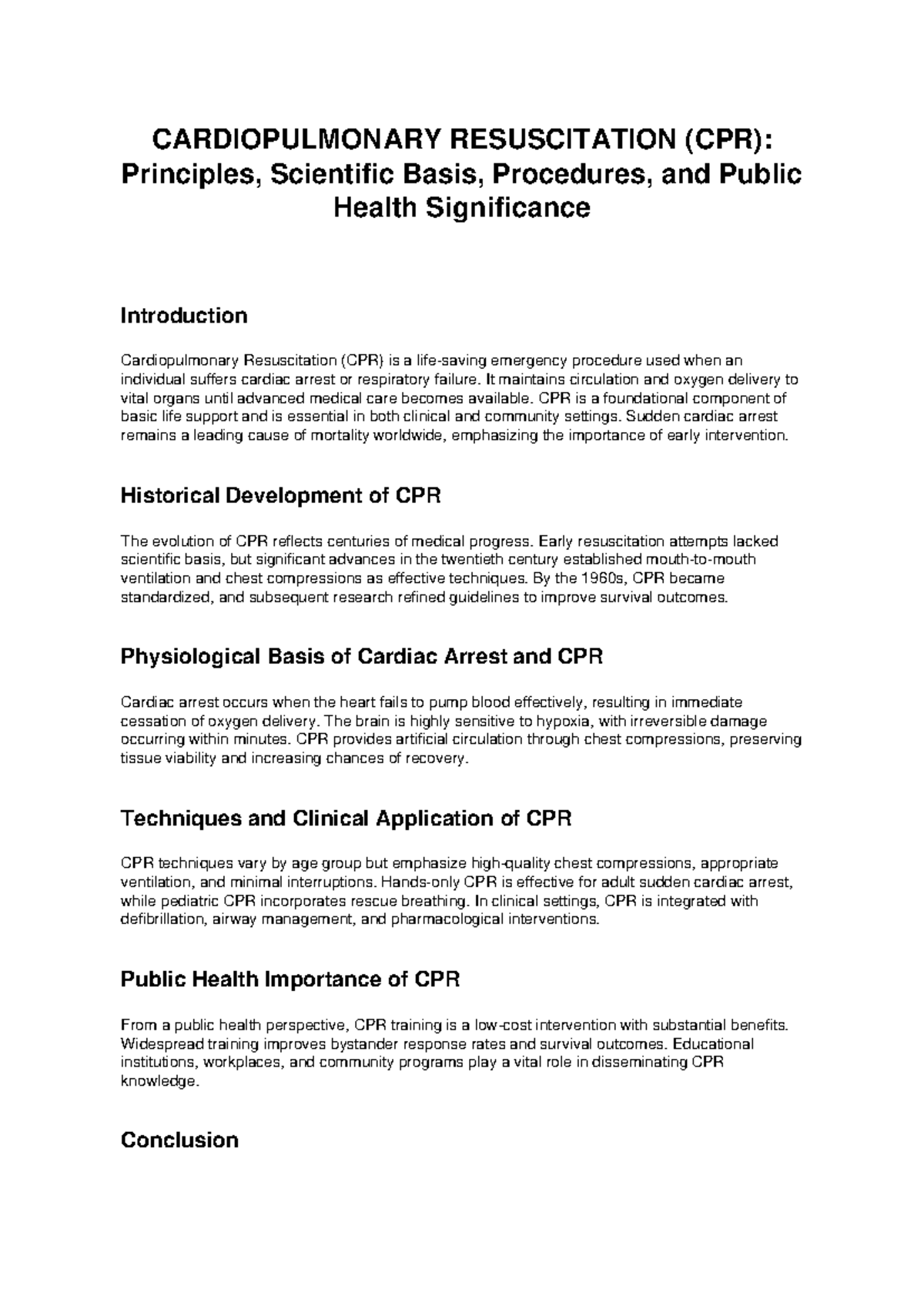 (PDF) Cardiopulmonary Resuscitation (CPR)