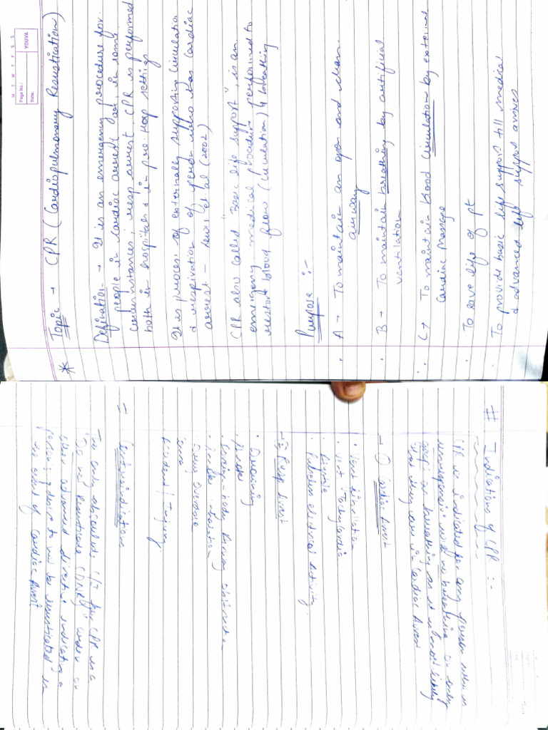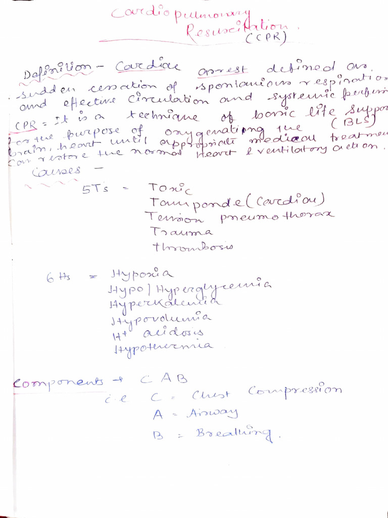 Cardiopulmonary Resuscitation (CPR) Handwritten Notes PDF File For Free