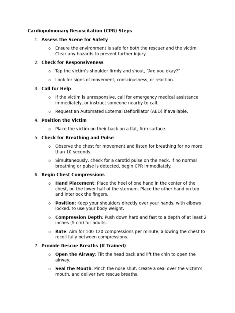 Steps of CPR Procedure | PDF | Cardiopulmonary Resuscitation | Pulse