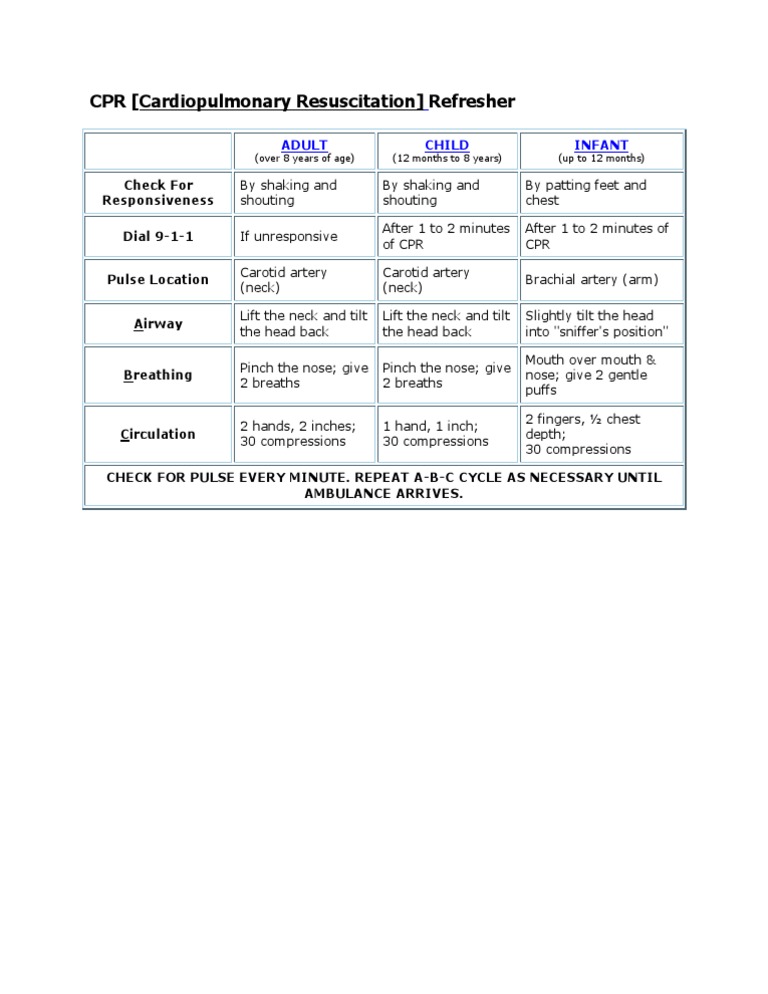 CPR Reference Sheet; Cpr; Cardiopulmonary Resuscitation; Cpr Cheat ...