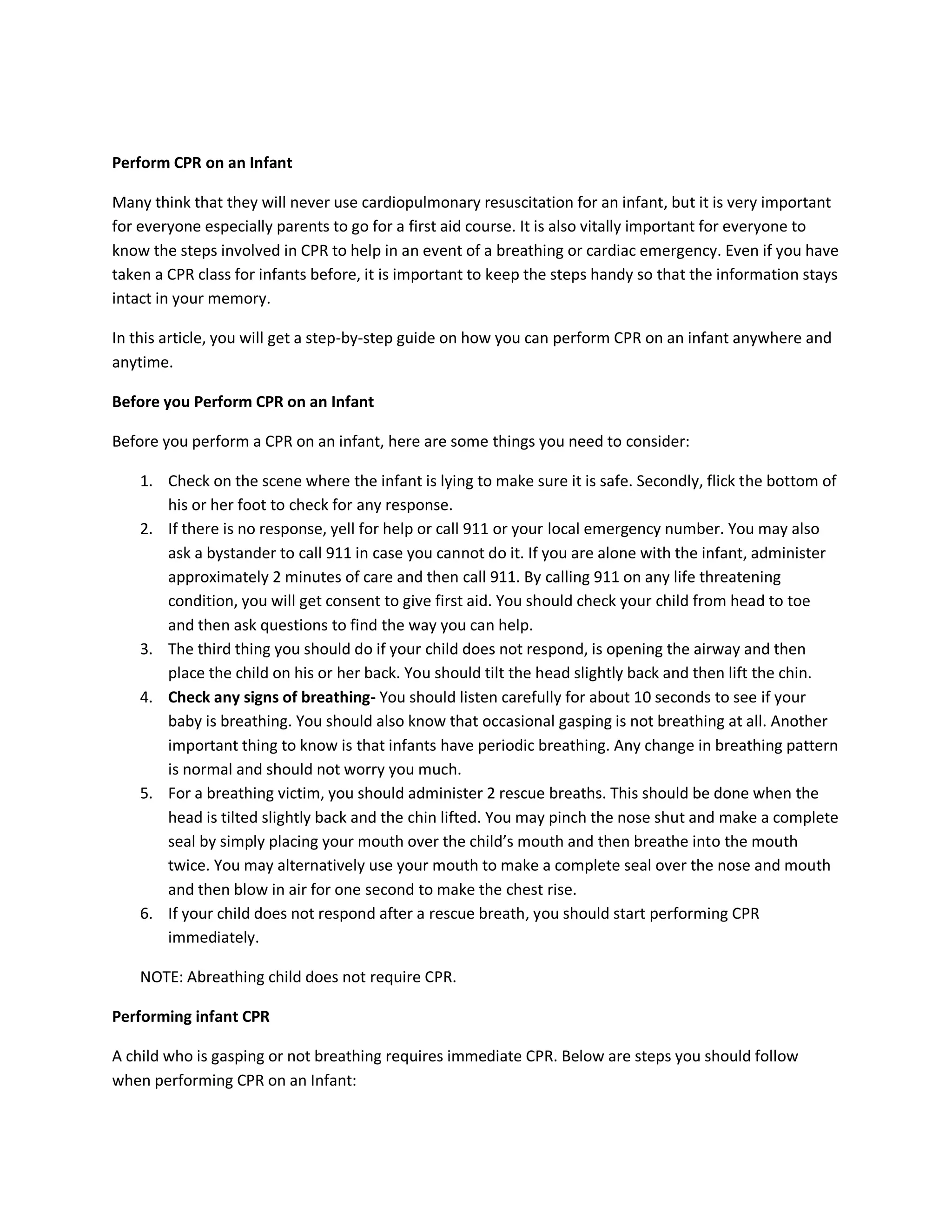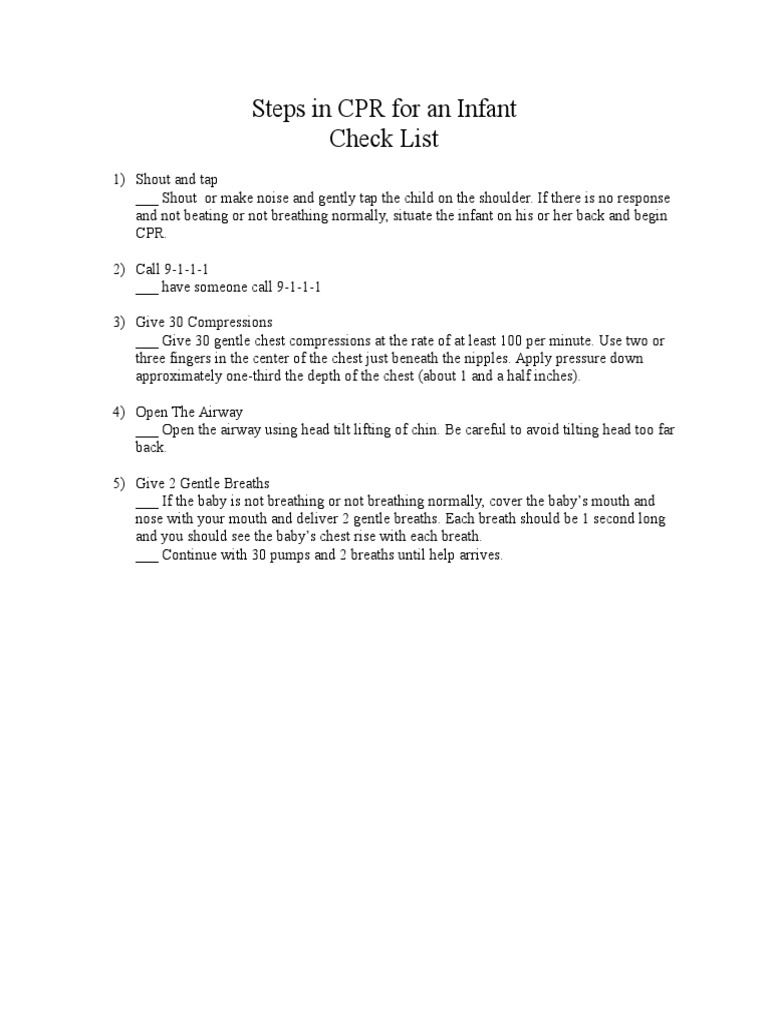 Infant CPR Steps and Procedure Guide | PDF | Wellness | Science ...