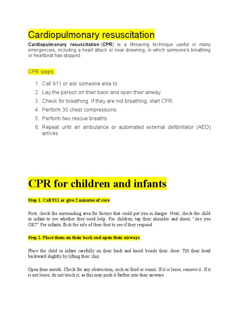 CPR (Adult, Child, Infant) | PDF | Cardiopulmonary Resuscitation ...
