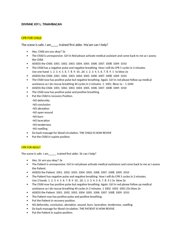 CPR Script | PDF | Cardiopulmonary Resuscitation | Science & Mathematics