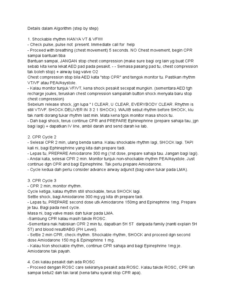 Algorithm (Step by Step) ACLS | PDF | Cardiopulmonary Resuscitation ...