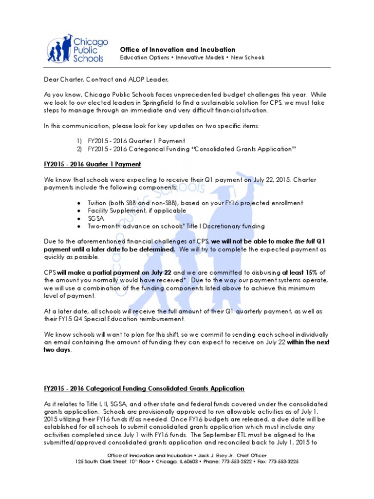 The letter CPS SHOULD have sent to members on August 28 - Chicago ...