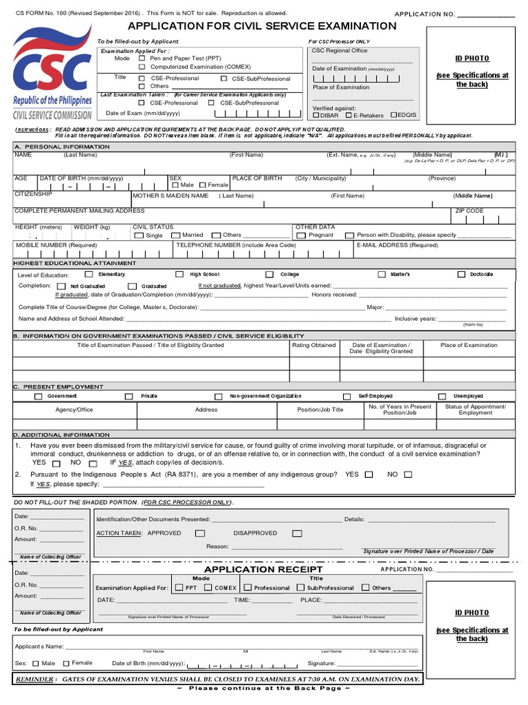 Cs Form 100 Revised September 2016 New | Identity Document | Test ...