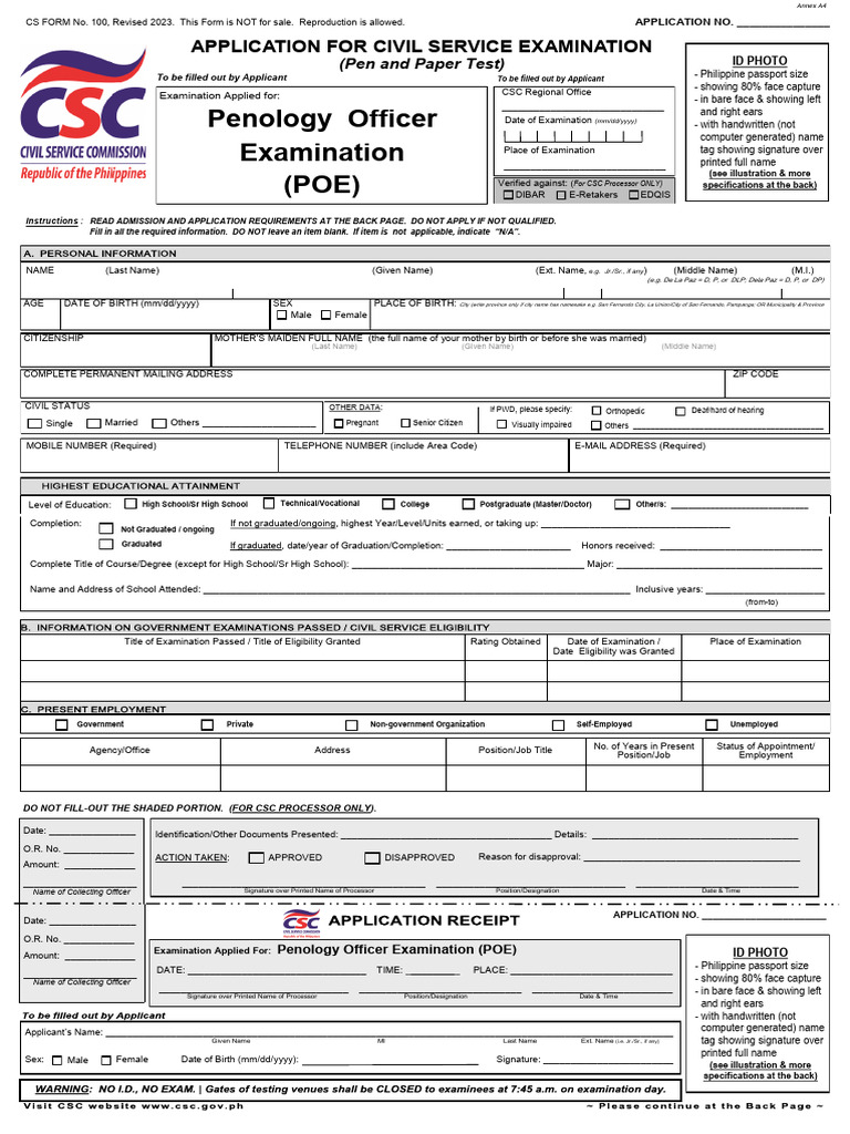 Civil Service Examination Form|CS Form No. 100 - NewstoGov