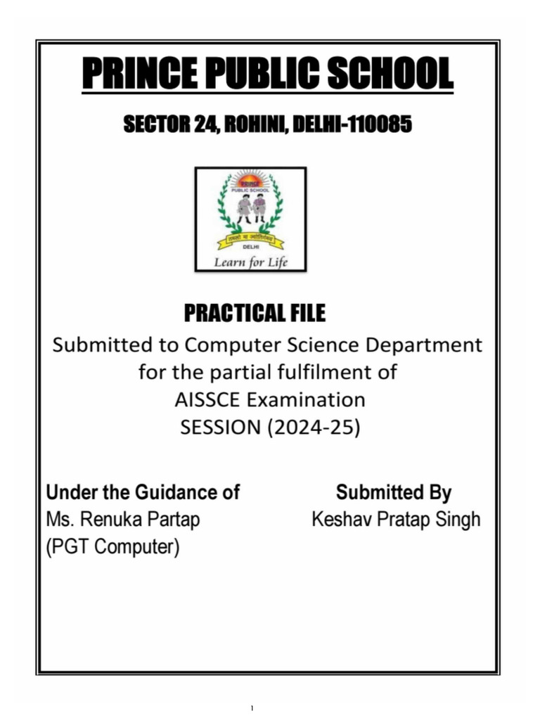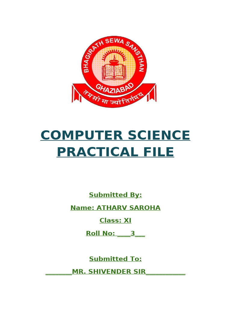 PRACTICAL FILE FRONT PAGE - 12th CS With Python | PDF