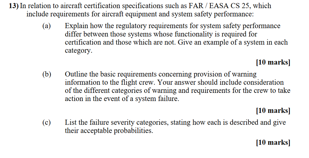 Solved In relation to aircraft certification specifications | Chegg.com