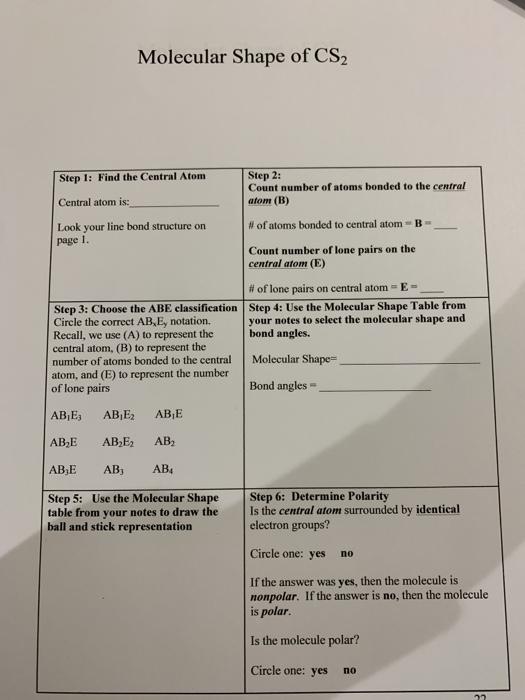 Solved Molecular Shape of CS2 Step 1: Find the Central Atom | Chegg.com