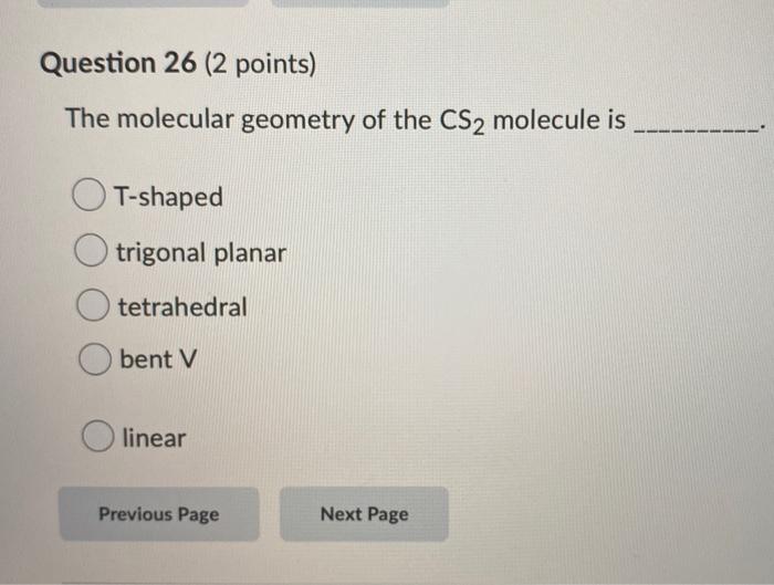 Solved Question 26 (2 points) The molecular geometry of the | Chegg.com