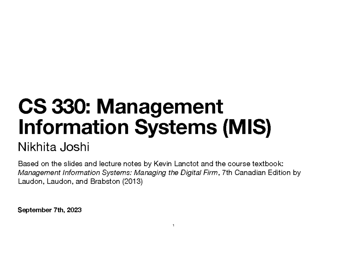 CS330 Intro - September 7th, 2023 CS 330: Management Information ...