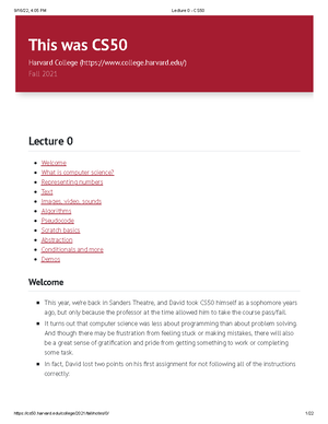 Lecture 0 - CS50x 2025 - Intro to Computer Science Overview - Studocu