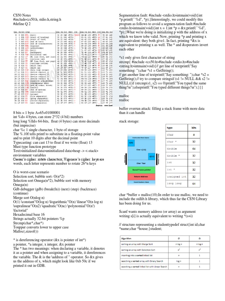 cs50 lecture notes and stuff | PDF | Pointer (Computer Programming ...