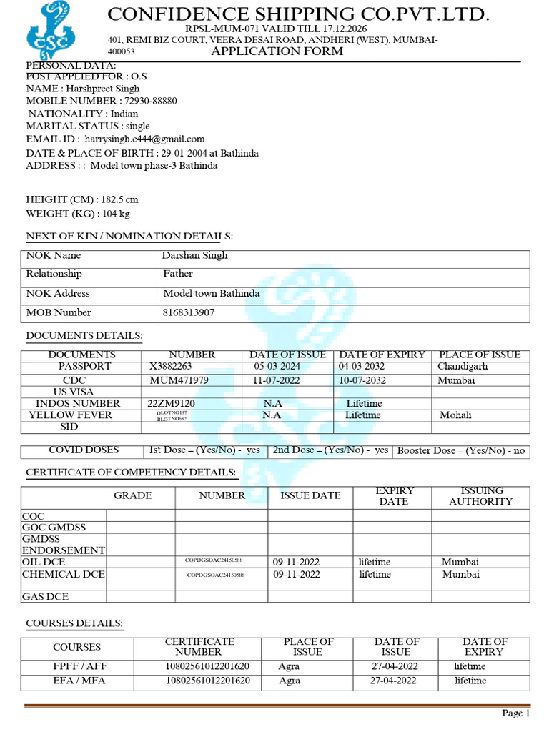 CSC Application Form | PDF | International Law | National Security