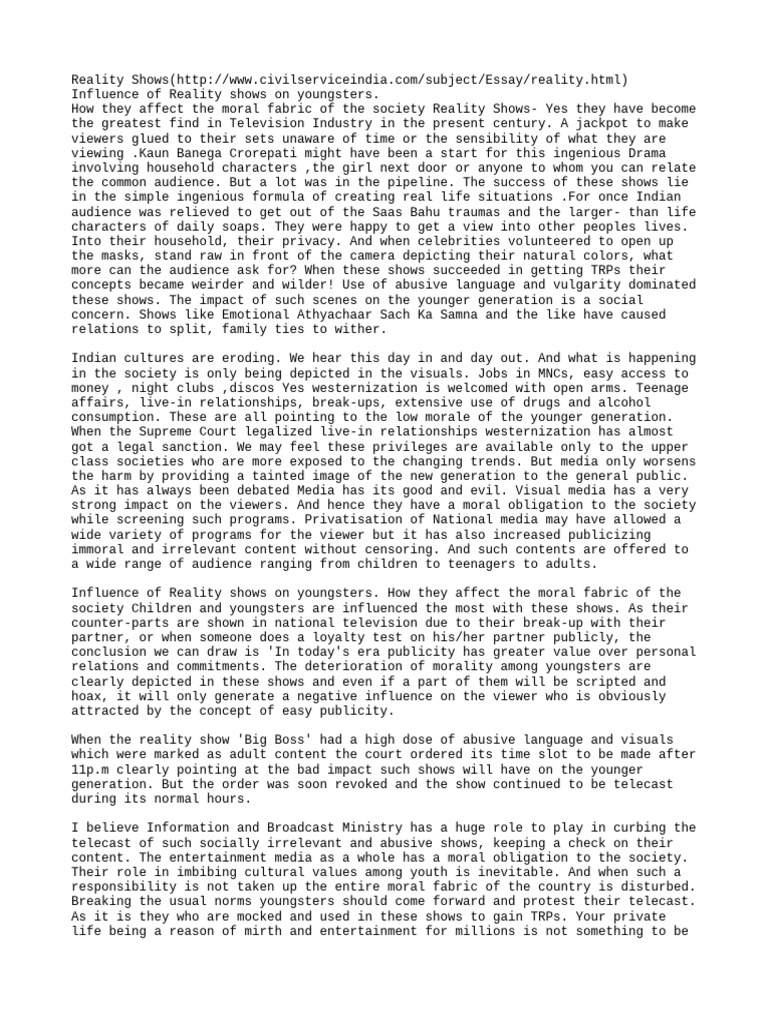 Essay Writing in CSC | PDF | Reality Television
