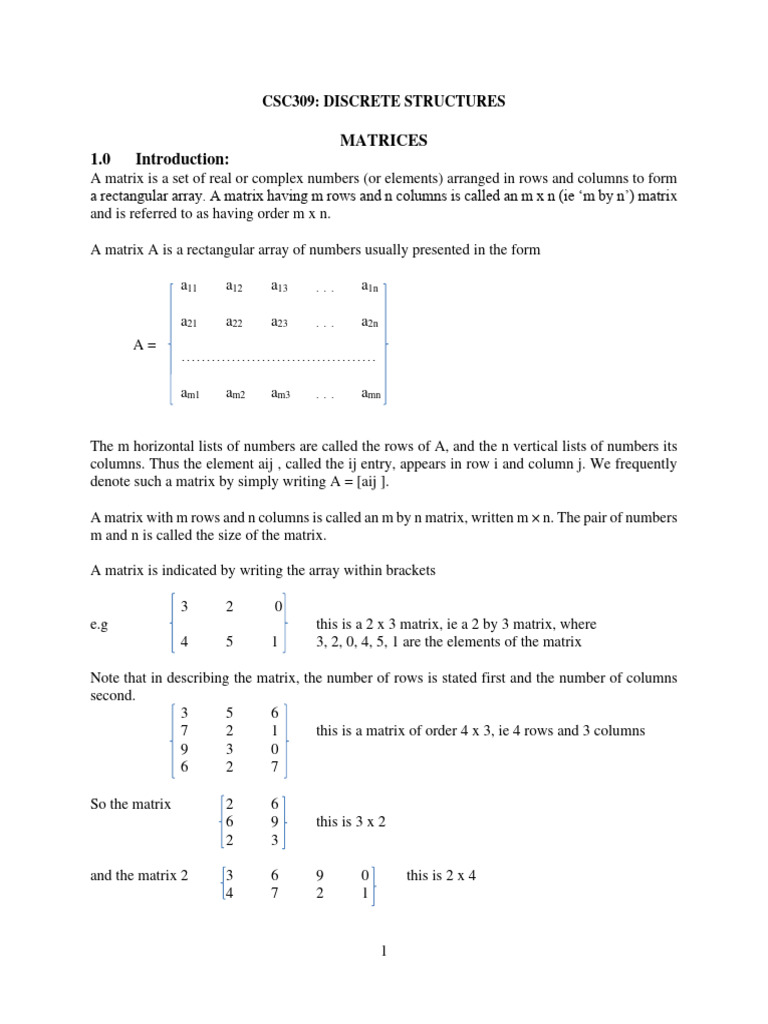 CSC 309 | PDF | Matrix (Mathematics) | System Of Linear Equations