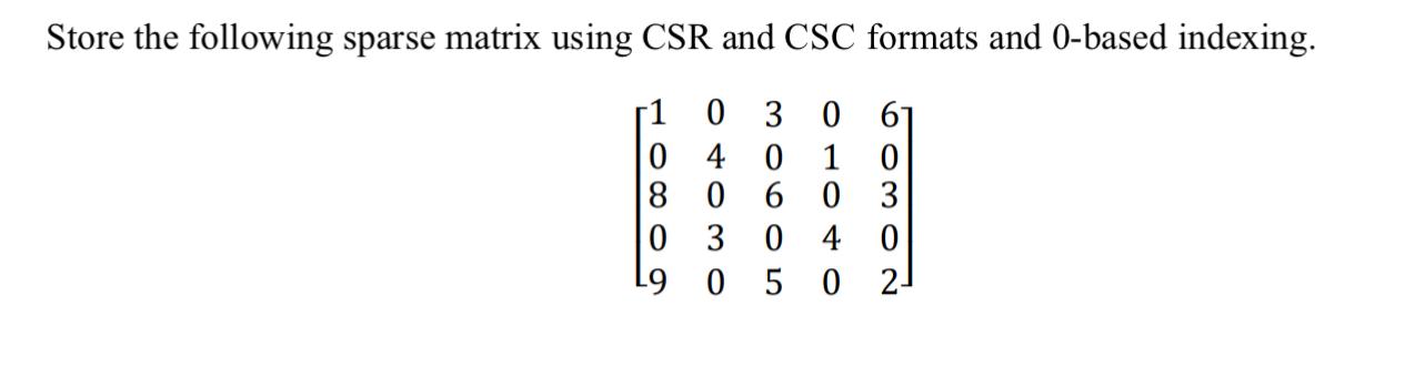 Solved Store the following sparse matrix using CSR and CSC | Chegg.com