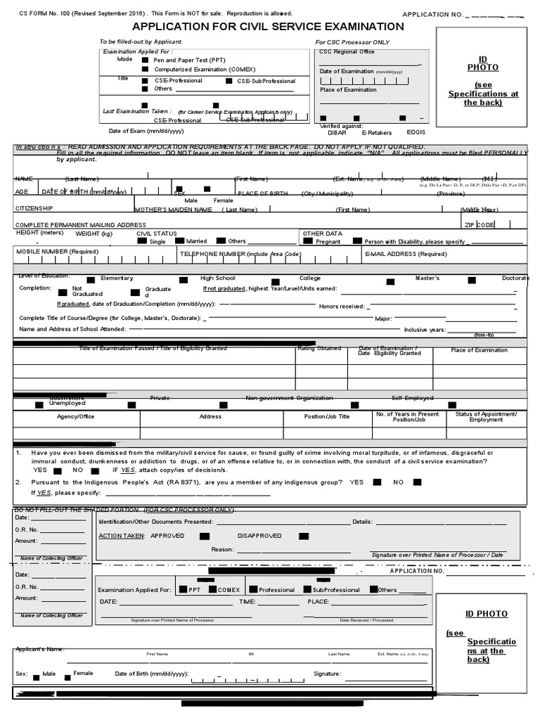Civil Service Examination Form No. 100 Revised September 2016 | PDF ...