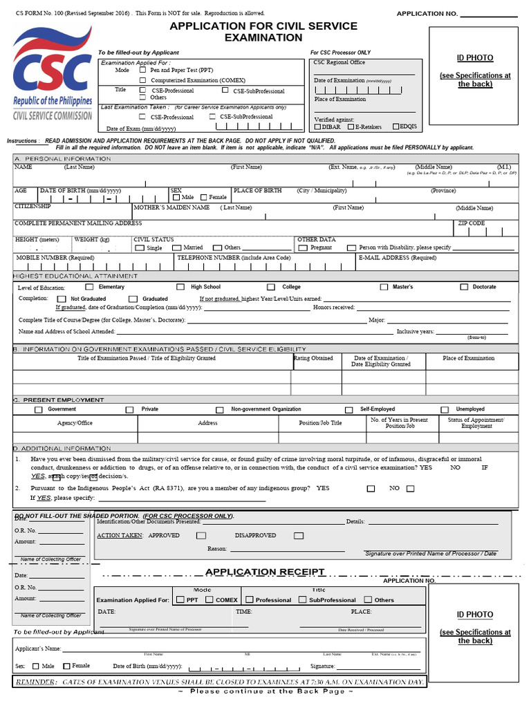 FREE DOWNLOAD: Civil Service Exam Application Form 100 (Latest Revision ...