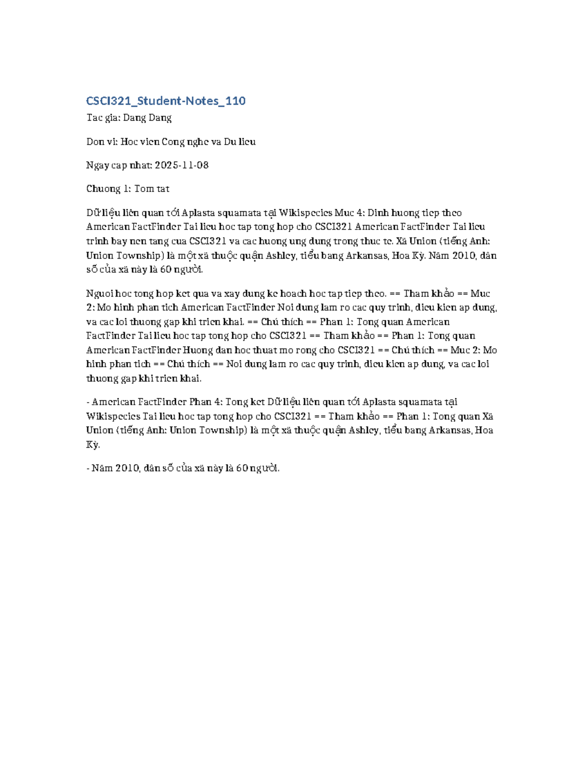 Đề cương học tập cho CSCI321: Tổng hợp American FactFinder - Studocu