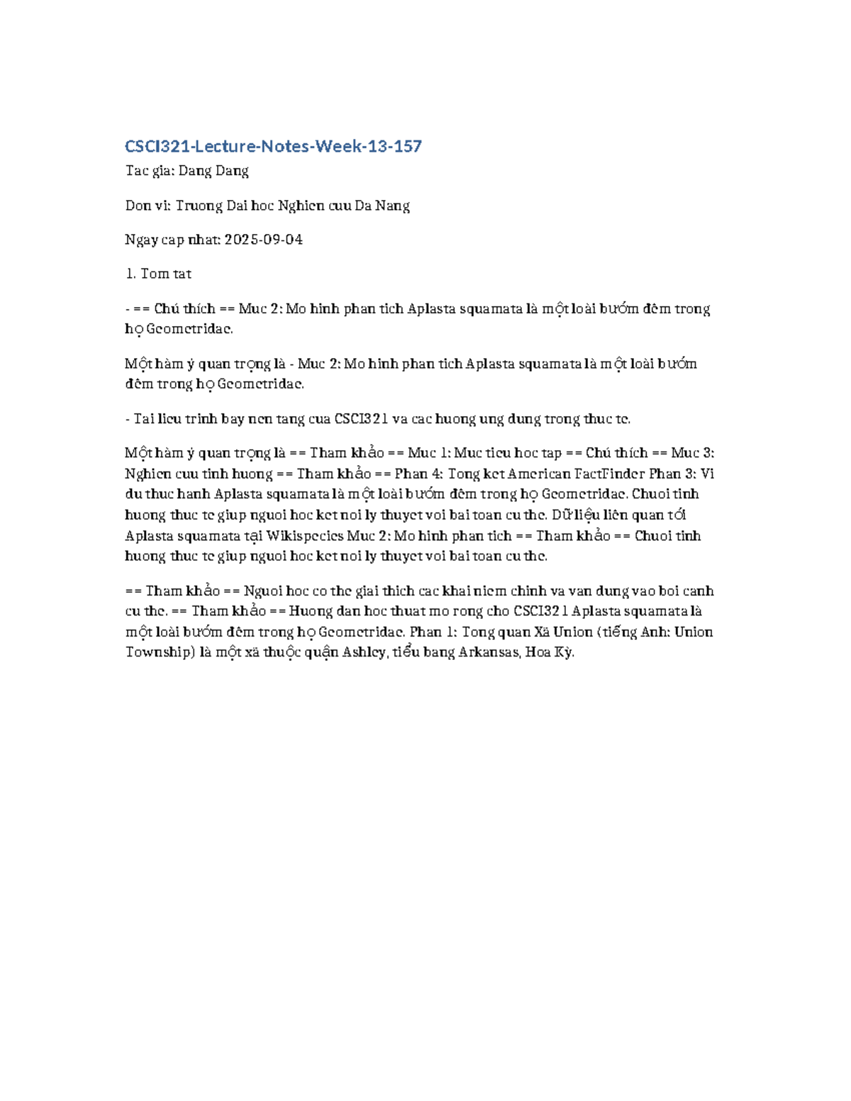 Đề cương học tập CSCI321: Phân tích và Ứng dụng Aplasta squamata - Studocu