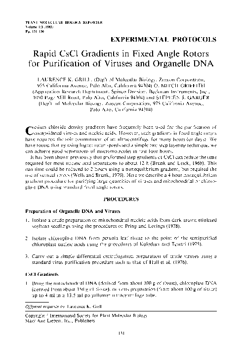 (PDF) Rapid CsCl gradients in fixed angle rotors for purification of ...