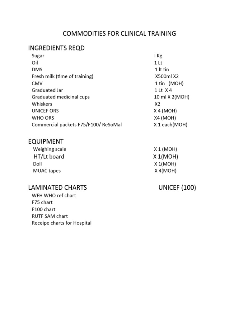 Commodities For Clinical Training | PDF