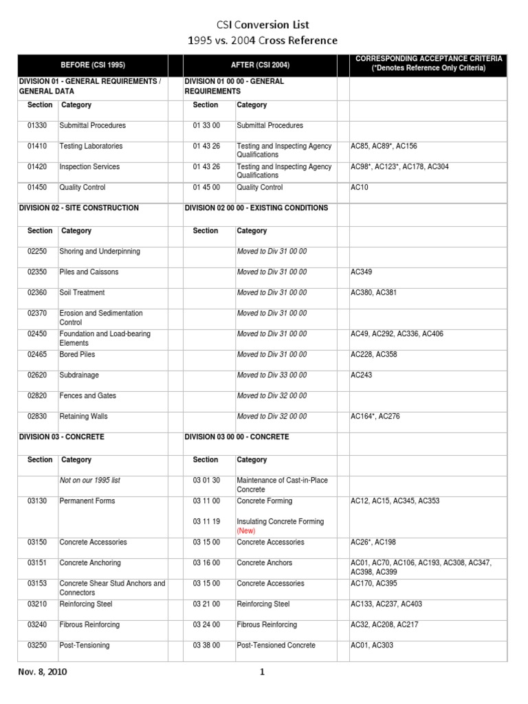 CSI Cross Reference 1995 Vs 2004 Sample | PDF | Framing (Construction ...