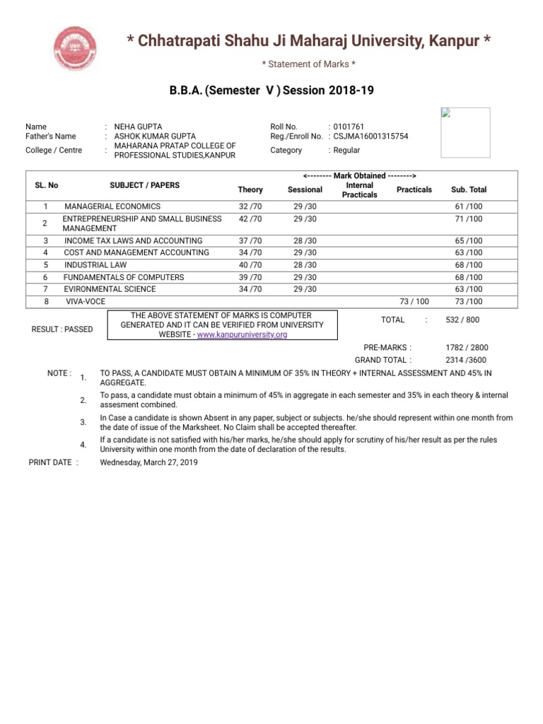 Chhatrapati Shahu Ji Maharaj University (CSJMU) Result 2026 at csjmu.ac.in