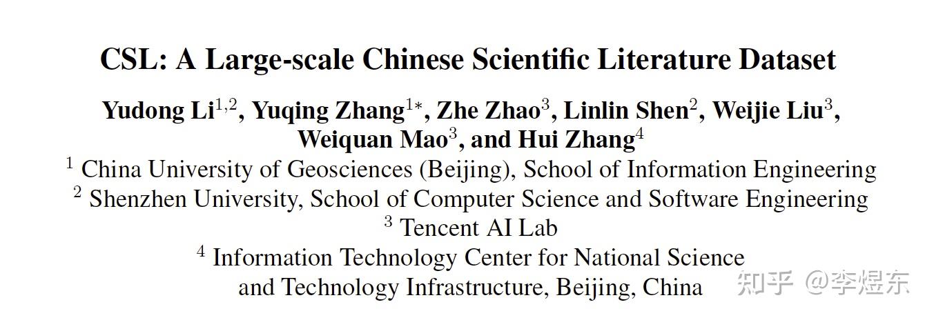 COLING 2022 | 中国地质大学、深圳大学、腾讯联合CSL-大规模中文科学文献数据集 - 智源社区
