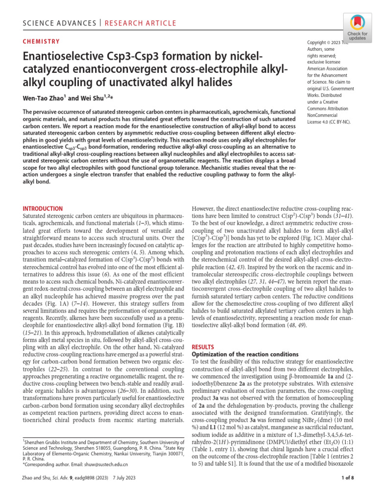 2023 Enantioselective Csp3-Csp3 Formation by Nickelcatalyzed ...