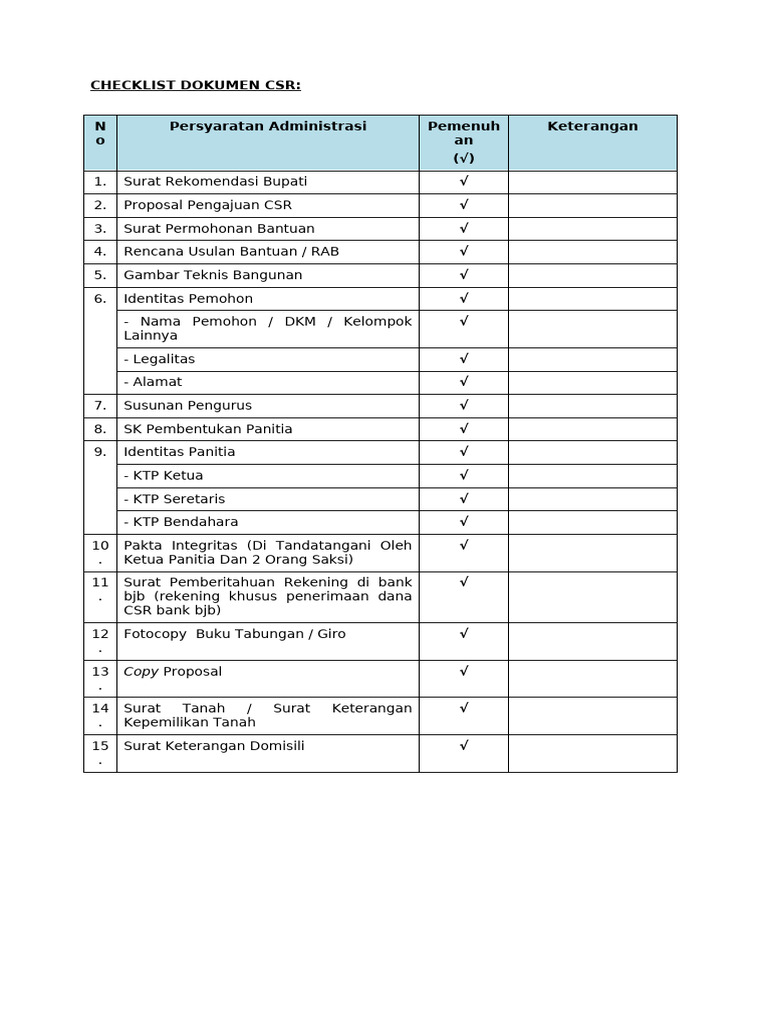 CSR Compliance Checklist | PDF | Cheque | Banks
