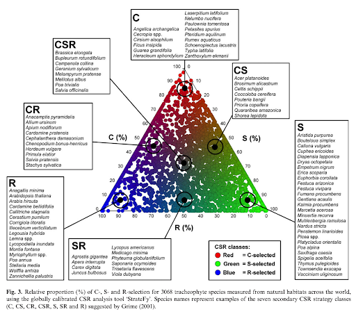 Grimes CSR model of vegetation function (after Grime 1974). Selected ...