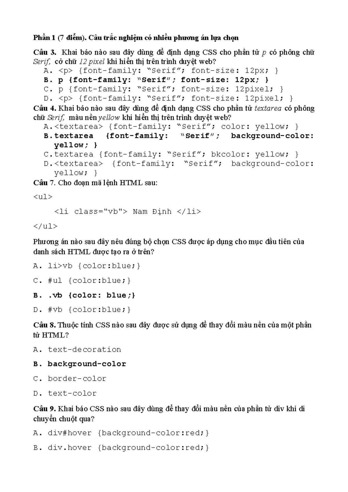 L12Anh2 HK2 Phần 1 & 2: Câu Trắc Nghiệm Về CSS - Studocu