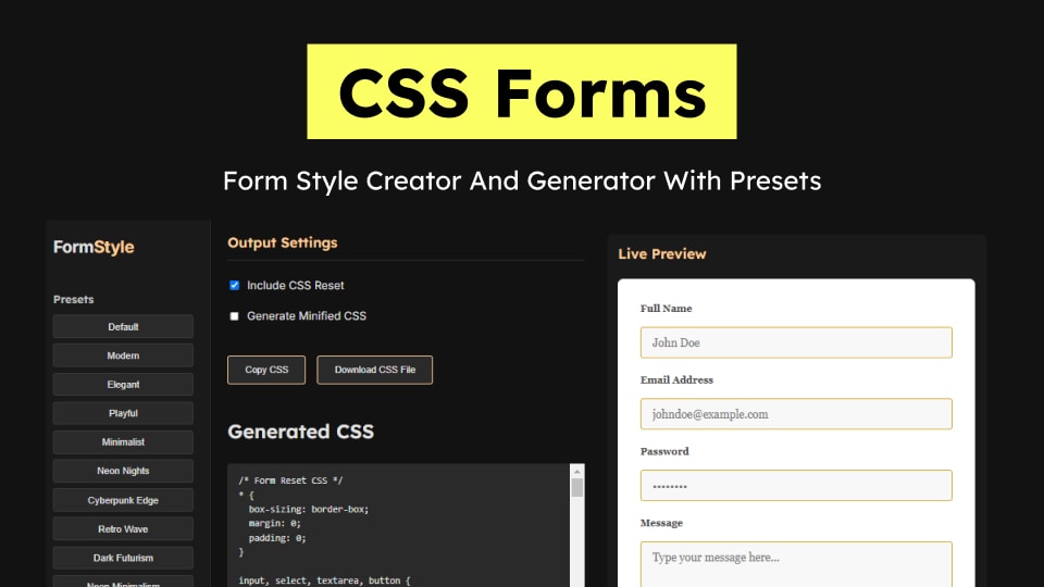 CSS Form Generator - Create Beautiful Custom Forms in Seconds | UI Surgeon