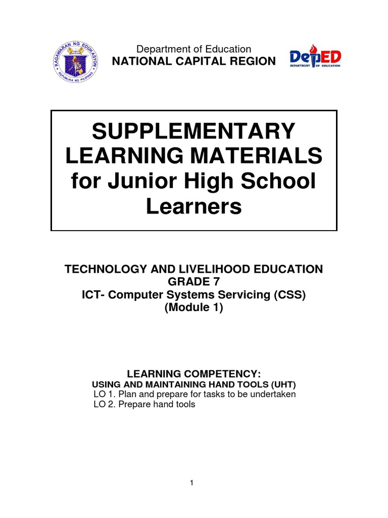 TLE Grade 7/8-Computer System Servicing-Module 1: Use and Maintain Hand ...
