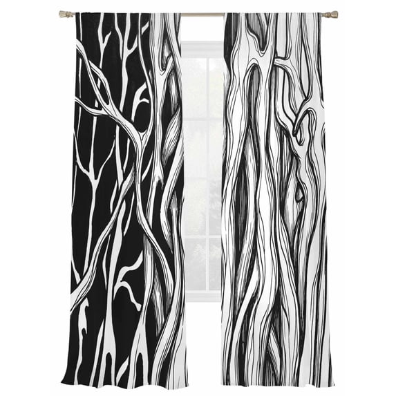 Abstract Black Line Window Sheer Curtain Tree Trunk Texture Modern ...