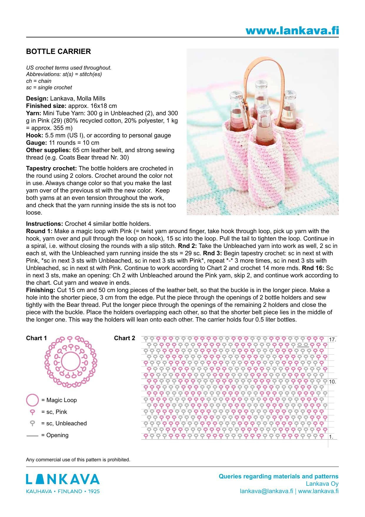 Bottle Carrier Crochet Pattern by Lankava: Pink and White Tapestry ...