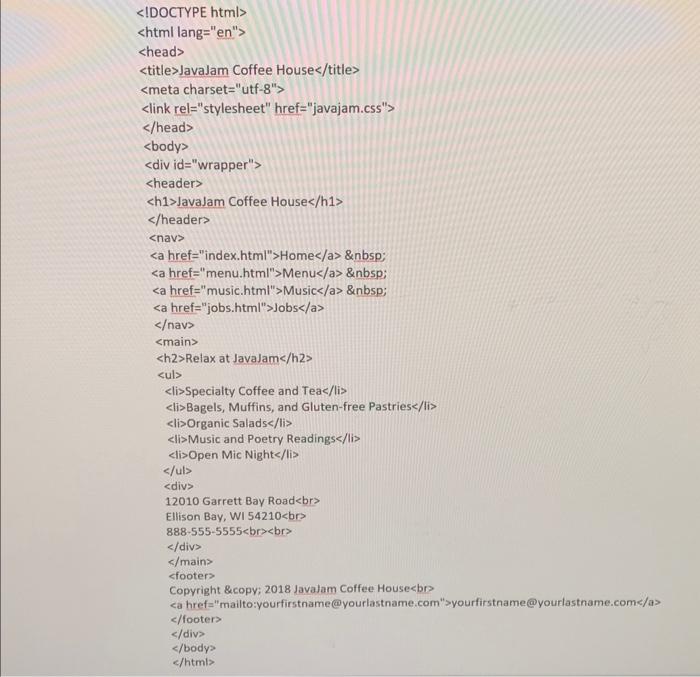 Solved What HTML5 code is used to create the JavaJam Coffee | Chegg.com