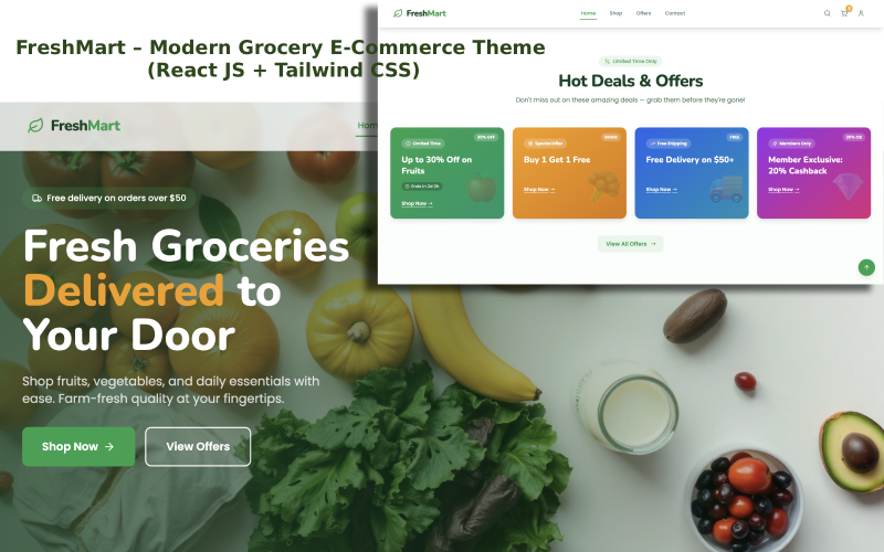 FreshMart – Modern Grocery E-Commerce Theme (React JS + Tailwind CSS)