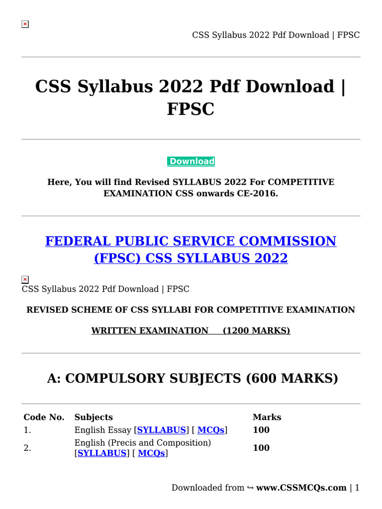 Latest css syllabus pdf all subjects for competitive examination – Artofit