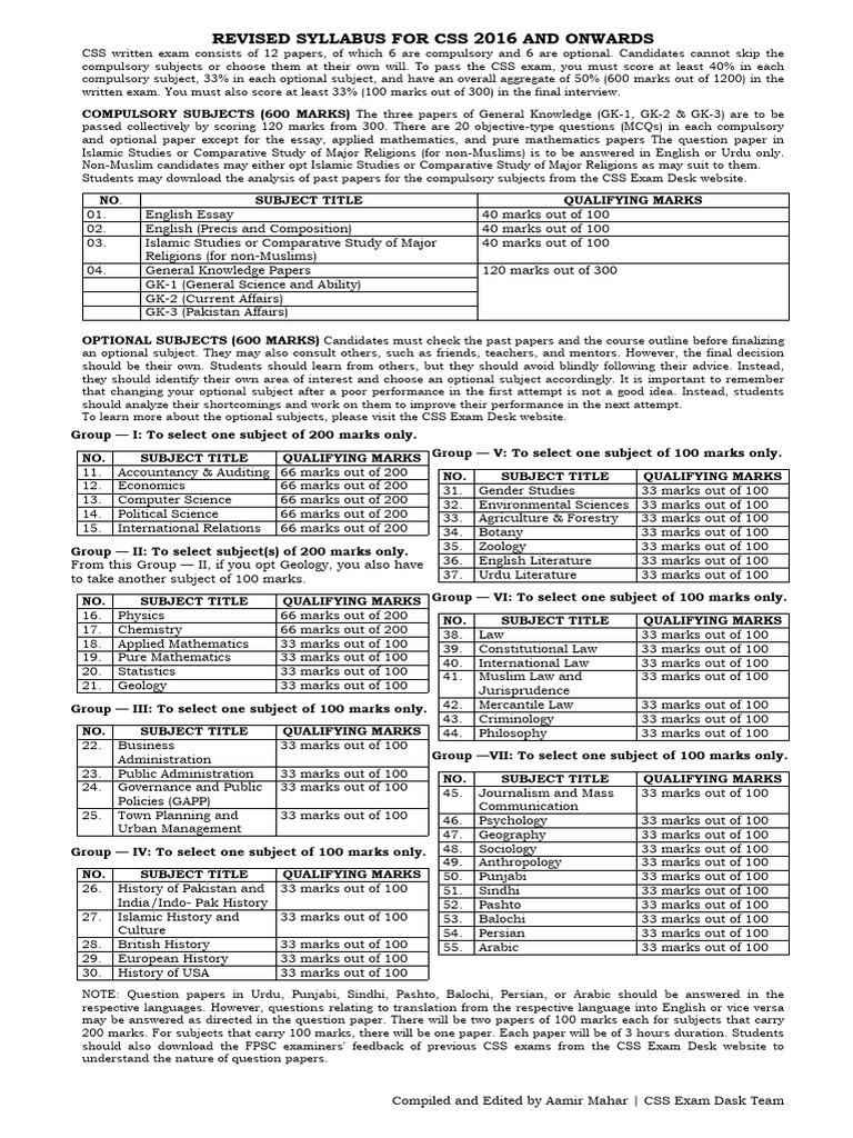 CSS Syllabus - Latest and Updated (Subjects) - 2021 | PDF