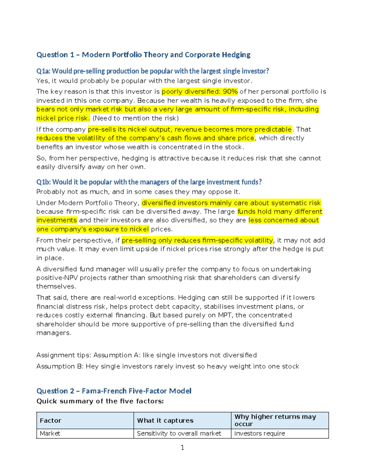 FINA3324 Tutorial Solutions: Modern Portfolio Theory & Corporate ...