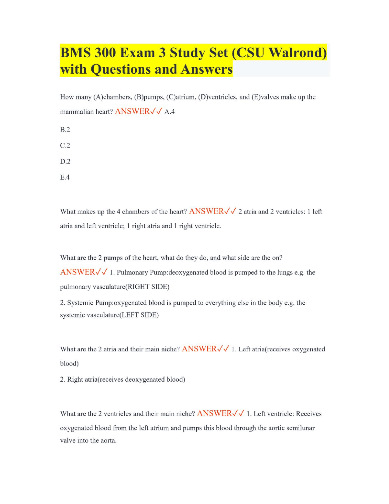 BMS 300 Exam 3 Study Set (CSU Walrond) with Questions and Answers ...